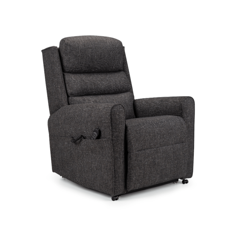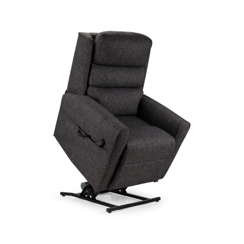 A British-manufactured triple-motor recliner combining independent back and leg movement with lumbar support adjustments. The zero gravity feature distributes weight equally to reduce pressure sores and improve circulation.