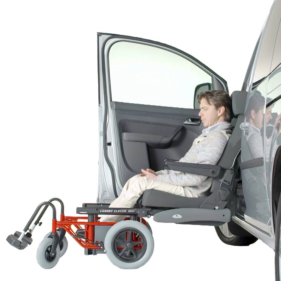 The Carony works with any BraunAbility swivel seat base — Turnout, Turnout E, Turny Low Vehicle, Turny Orbit, or Turny Evo. Contact NBR Mobility to discuss the best combination for your needs.