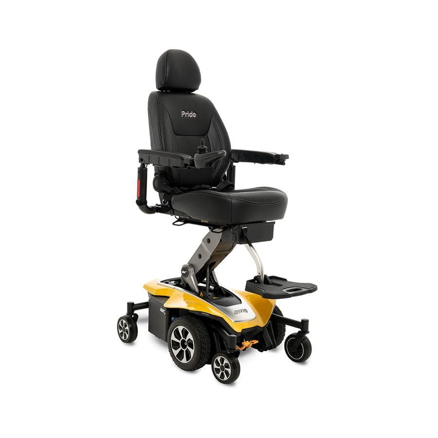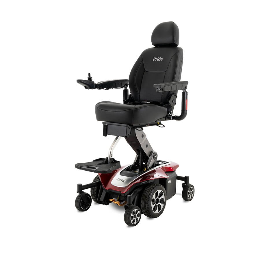 A powered mobility chair designed for enhanced accessibility. The Jazzy Air 2 seat elevates 300 mm in just 11 seconds while maintaining stability, allowing users to interact at eye level in social and professional situations.