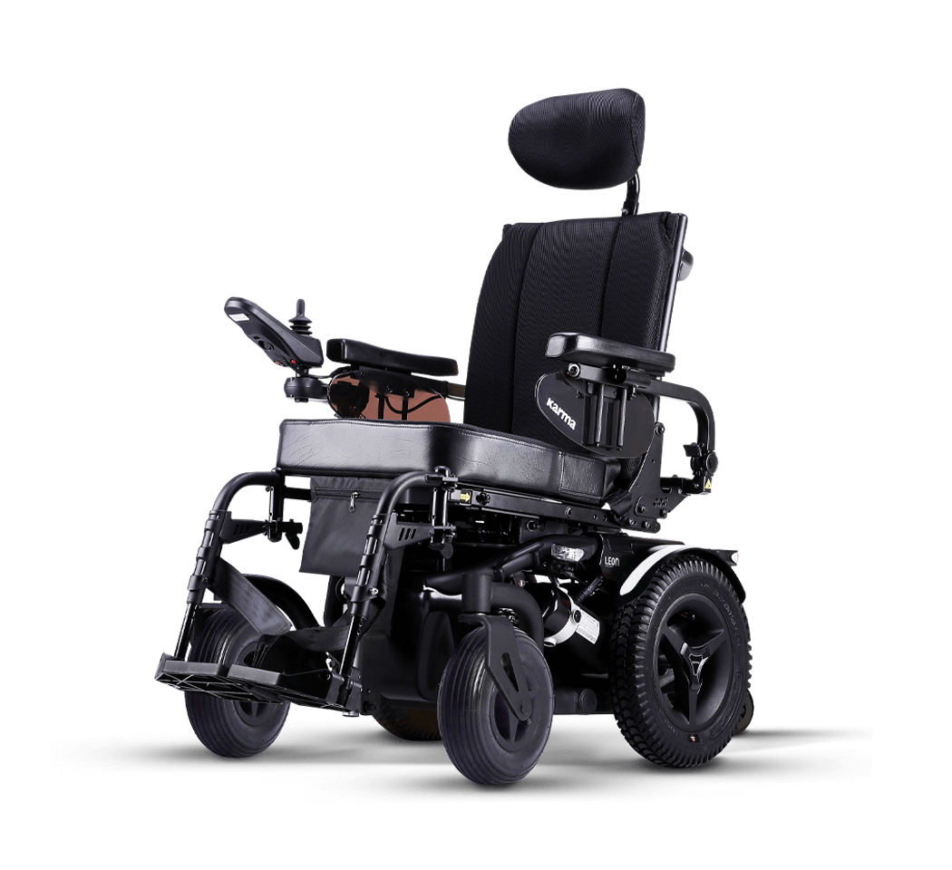 The Leon R Sling is an indoor/outdoor rear-wheel drive powered wheelchair offering excellent stability on uneven terrain and obstacle climbing capabilities. Its compact, foldable backrest design makes it easy to store and transport.
