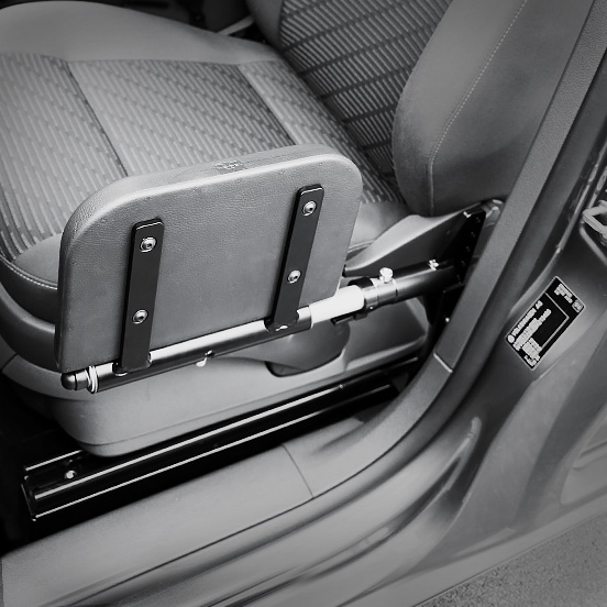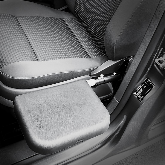 The Veigel Comfort Transfer Board provides a simple, effective solution for wheelchair users who need a stable surface to slide across when transferring between their wheelchair and car seat. Mounted to the vehicle’s B-pillar, it folds down when needed and stores away neatly when not in use.