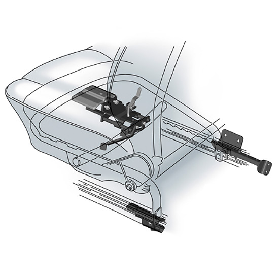 The Veigel Slider is a seat rail extension that adds approximately 40cm of additional rearward travel to the vehicle seat. By allowing the seat to slide much further back than standard, the Slider positions the seat closer to the open door — making wheelchair-to-seat transfers significantly easier.